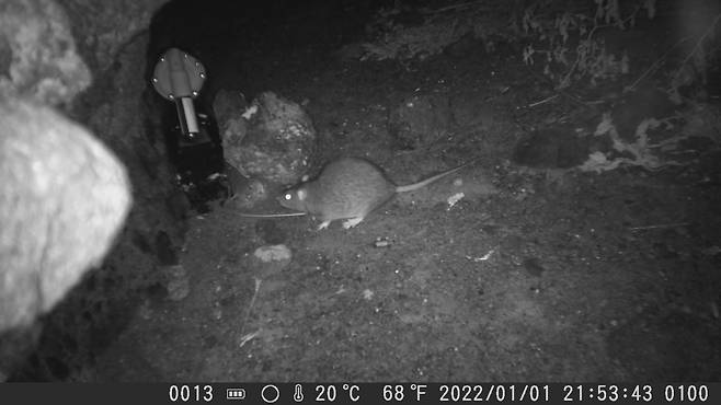 동도의 집쥐는 2016년 현장 조사에서 무인 센서 카메라를 통해 실제 모습이 확인되었습니다.