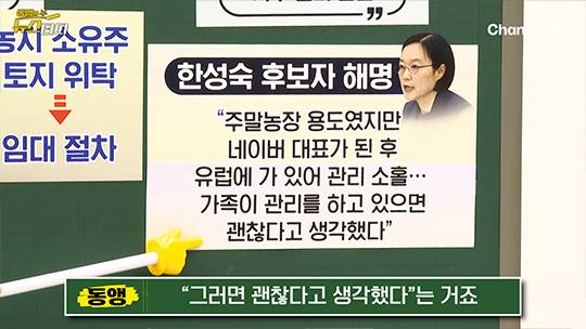 한성숙 후보자는 “내가 농사지은 건 아니다”라고 청문회에서 인정했습니다. 한 후보자는 “네이버가 대표가 된 후 관리가 소홀했다. 유럽 부문 대표로 유럽에 가 있고 하다 보니 가족이 농지를 관리했다. 그러면 괜찮다고 생각했다”는 건데요. 내가 농사 못 짓는 상황이면, 농지은행을 통해 위탁 영농을 하거나 이 땅을 팔아야 되는 게 법상으로는 맞죠. 그런데 가족에게 대신 농사를 지어달라고 했다는 겁니다. 엄밀히 따지면 농지법 위반이지만, 막상 해명을 들으면 또 이해가 되는 구석은 있는 상황입니다.