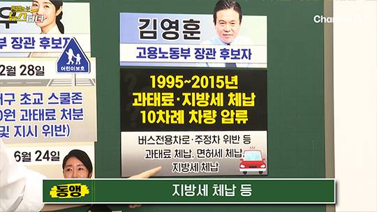 김영훈 고용노동부 장관 후보자는 1995년부터 2015년까지 과태료와 지방세 등을 체납해 무려 10차례 차량이 압류된 전력이 있는데요. 버스전용차로 위반과 주정차 위반 등에 대한 과태료 체납, 면허세 체납, 지방세 체납을 하다가 차량을 압류당했던 거예요. 민노총 위원장 출신인 김 후보자는 이에 대해 “노조 활동 과정에서 집을 자주 비우다 보니 제때 납부하지 못한 점이 있다. 앞으로는 이런 일이 없도록 하겠다. 국민 여러분께 송구하다”는 입장을 밝혔습니다.