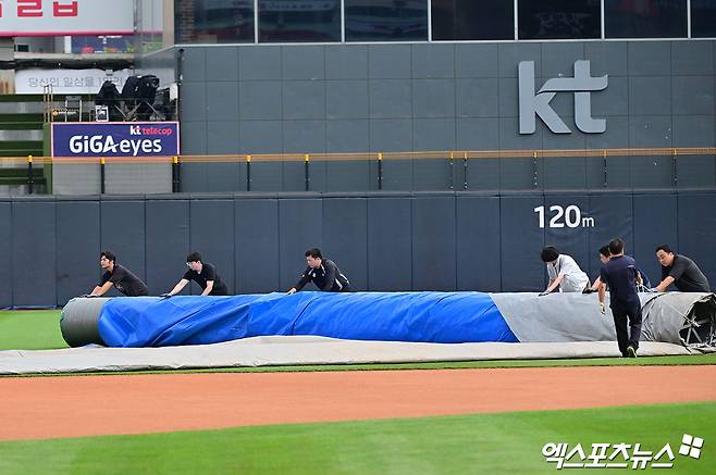 (엑스포츠뉴스 수원, 조은혜 기자) 전국에 계속되는 비, 한화 이글스와 KT 위즈의 경기가 정상 개최될까.
