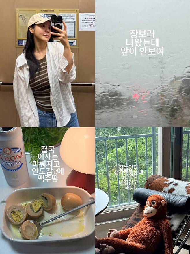 이어 "그리웠던 우리 집에서 인형이랑 인사하고 비를 뚫고 간단히(?) 장봐서 왔다. 그런데 이사는 내일 비 때문에 못 하겠다는 연락을 받았다"고 이사를 하루 앞두고 폭우로 인해 취소된 사연을 털어놨다.