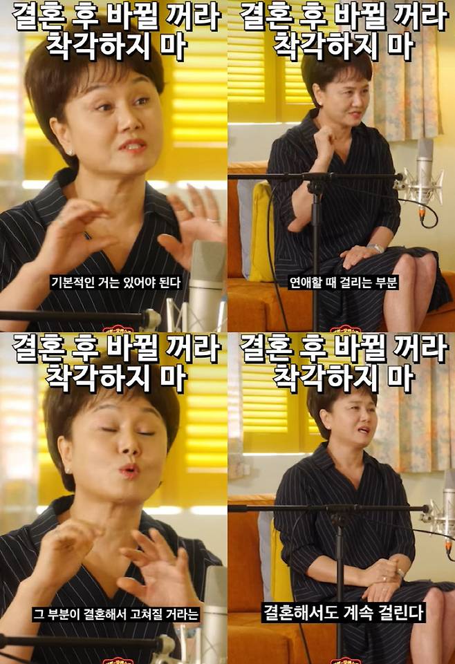 특히 이경실은 "경제적인 건, 기본적인 거는 있어야 된다. 하지만 정말 중요한 건 나를 진심으로 사랑해 주는 사람을 만나는 것"이라며 "연애할 때 마음에 걸렸던 부분은 결혼하면 고쳐지겠지 하는 착각은 절대 금물이다. 그건 결혼해서도 계속 걸린다"며 단호히 조언했다.