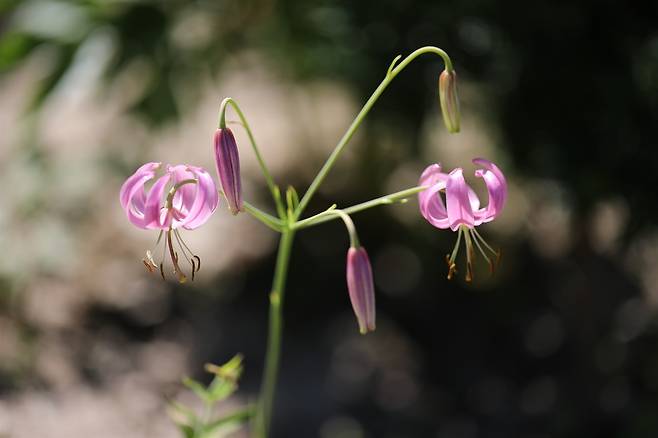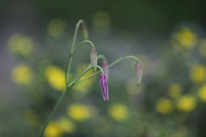 유월 초부터 봉오리가 솟기 시작했다. 한여름은 꽃이 궁한 시기라 하여 이른바 '꽃궁기'로 통한다. 이 한여름에 감탄사를 연발케 하는 요조숙녀가 있으니 바로 솔나리다.