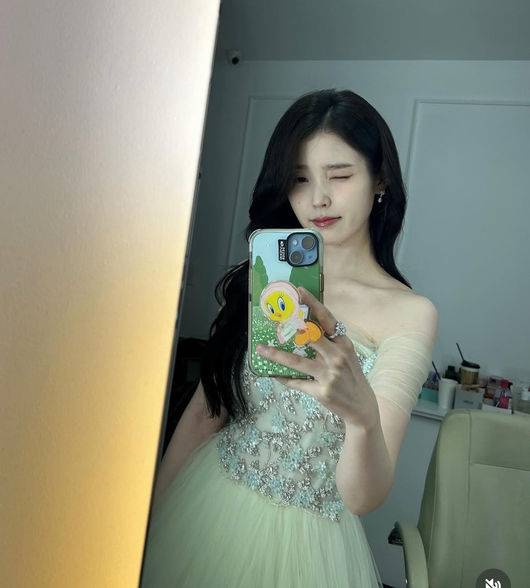 19일 아이유는 자신의 소셜 계정에 여러 장의 사진을 공개했다. 아이유 특유의 하얀 피부가 돋보이는 흰 레이스와 비즈가 가득 박히고 늘어진 드레스는 아이유의 청순함을 더했다. 아이유는 제주 소녀로서 분했던 드라마 속 장면과 다르게 새하얀 본래의 피부를 찾았다.
