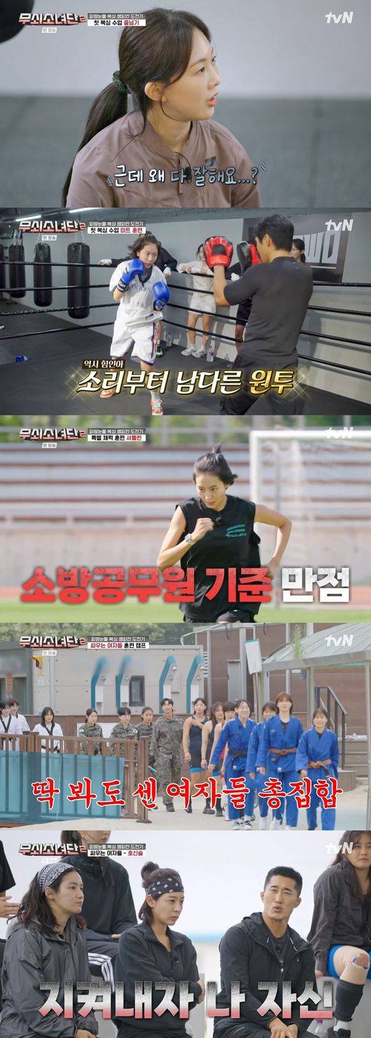 그런가 하면 ‘강철부대W’ 조성원, ‘피지컬: 100’ 장은실, 태권도 금메달리스트 김소희, 주짓수 금메달리스트 성기라 등과 함께한 ‘싸우는 여자들 훈련 캠프’가 관심을 모았다. 태권도, 레슬링, 주짓수, 특공무술까지 각 팀의 강렬한 시범은 물론 일상생활에 적용이 가능한 호신술을 배워보는 시간이 유익함을 배가시키며 앞으로 펼쳐질 훈련을 기대케 했다.