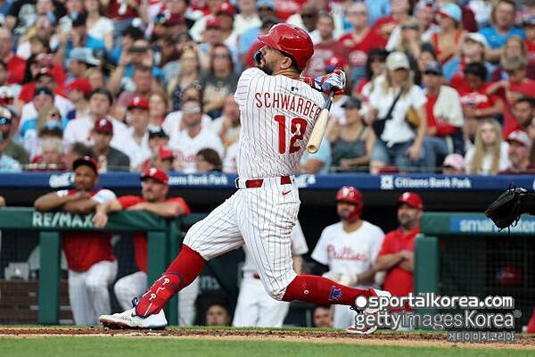 필라델피아 필리스 카일 슈와버는 19일(이하 한국시각) 미국 펜실베이니아주 필라델피아의 시티즌스 뱅크 파크에서 열린 2025 메이저리그(MLB) 정규시즌 LA 에인절스와의 경기에 2번 지명타자로 선발 출전해 3타수 1안타(1홈런) 1볼넷 1타점 2득점을 기록했다.