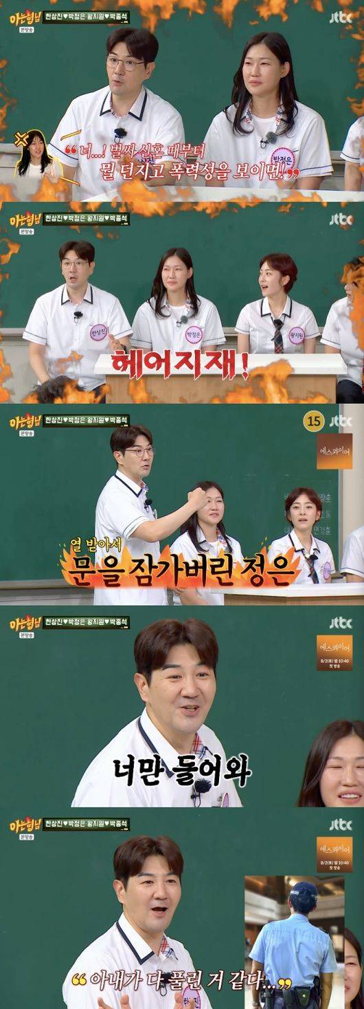 한상진♥박정은, 신혼여행 첫날 이혼할 뻔..보안요원까지 등장 “무릎 꿇고 각서”(아형)[종합]