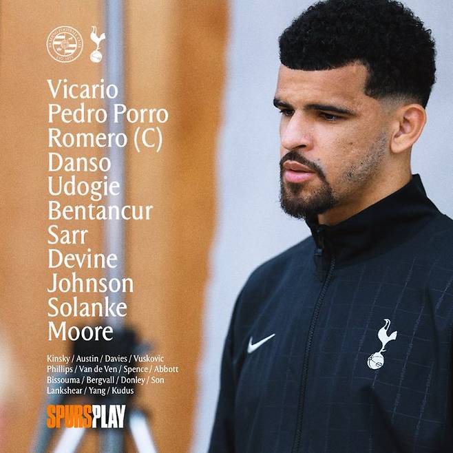 벤치 명단에는 손흥민을 비롯해 모하메드 쿠두스, 미키 판 더 펜, 이브 비수마, 제드 스펜스, 애슐리 필립스, 윌 랭크셔, 양민혁 등 경험 많은 선수들과 유망주들이 고르게 포함됐다.