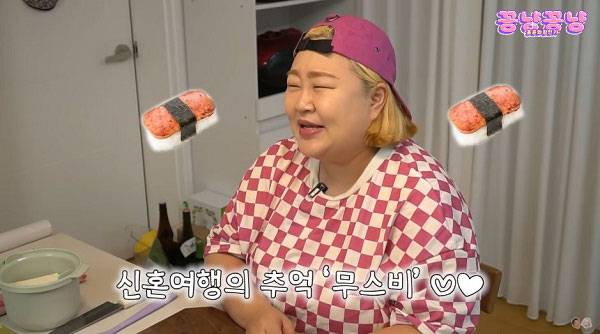 홍윤화는 "무스비의 맛을 완성시키는 것은 스팸이다"라며 "다이어트 중이니까 단백질이 많은 닭가슴살 스팸으로 만들겠다"고 말했다.