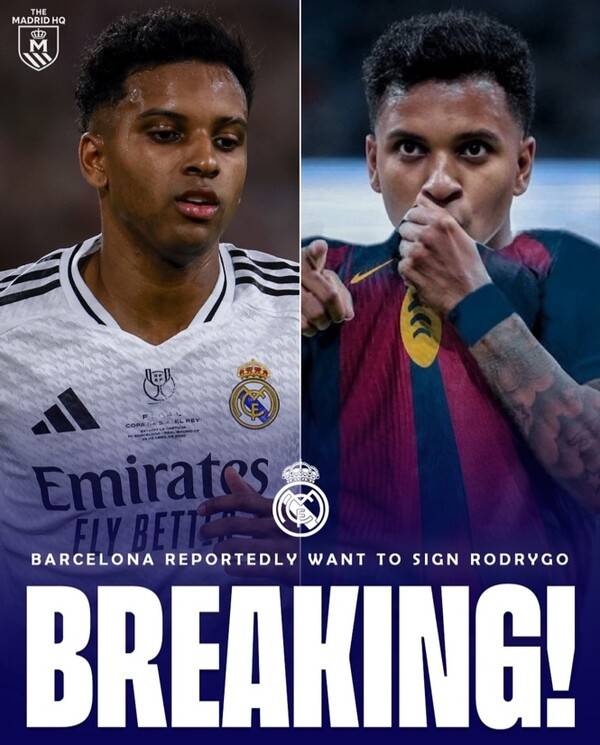 바르셀로나가 호드리구를 호의적으로 평가하고 있기 때문에 가능하다. 스페인 ‘UOS’는 “바르셀로나는 호드리구가 라이벌 레알에서 뛰고 있음에도 그를 ‘적대적인 선수’로 인식하지 않는다. 이는 비니시우스 주니오르의 이미지와 차별화된 부분”이라고 설명했다.