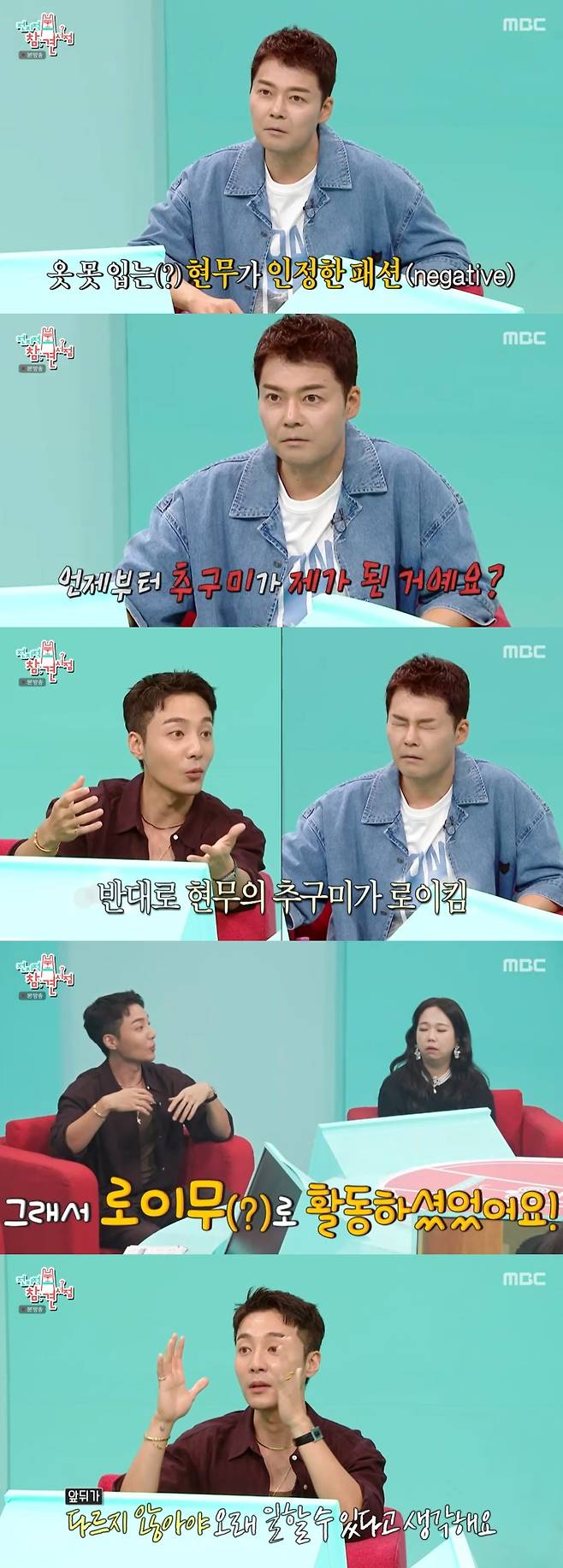 이어 로이킴의 난해한 패션을 본 MC들은 깜짝 놀랐고, 유병재가 "추구하는 방향이 있냐"라며 묻자, 로이킴은 "빈티지한 거 그런지한 거"라고 답했다.