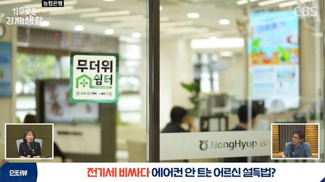 ◇ 김진희> 무더위 쉼터라고 안내 표지판이 붙어 있을 텐데요. 은행에 관련 업무라든지 마트에 뭔가를 사러 가는 경우가 있잖아요. 그런 경우가 아니더라도 지나가시다가 너무 더우면 들어가셔서 조금 쉬었다가 가실 수 있는 겁니다.