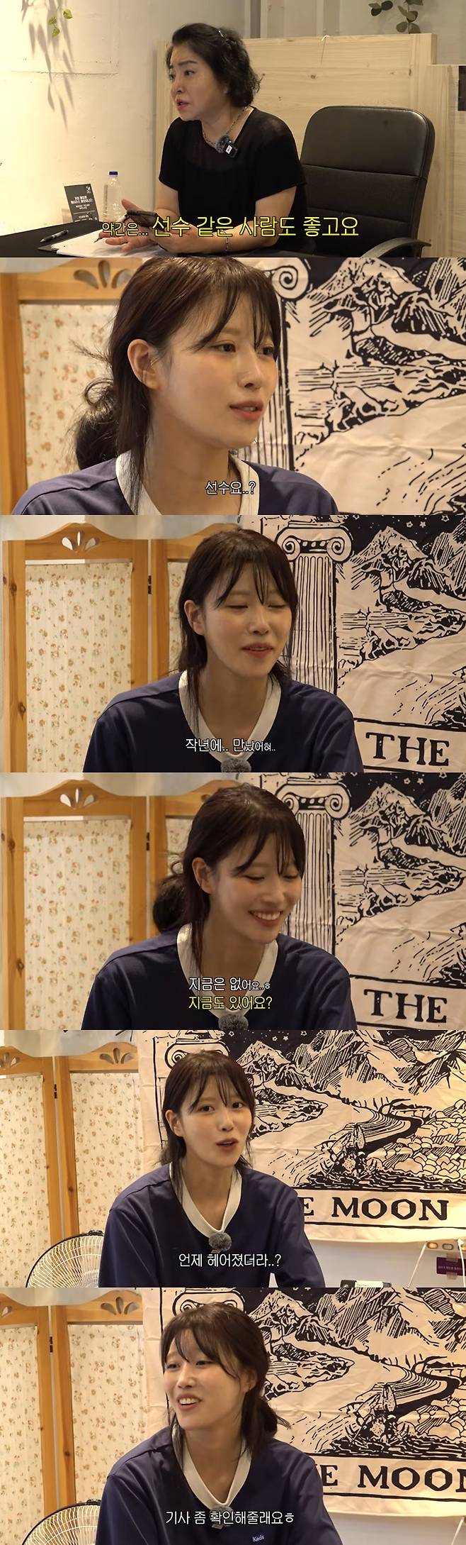 선수 같은 사람이 좋다는 말에 이미주는 "선수요?"라고 당황하며 민망한 웃음을 터뜨렸고, 전문가는 "재밌는 사람"이라고 설명했다. 이어 전문가가 "여태까지 남자운이 그렇게 썩 좋게 온 적은 별로 없다"고 하자 이미주는 "다들 그렇게 얘기하시더라"며 고개를 살짝 끄덕였다.