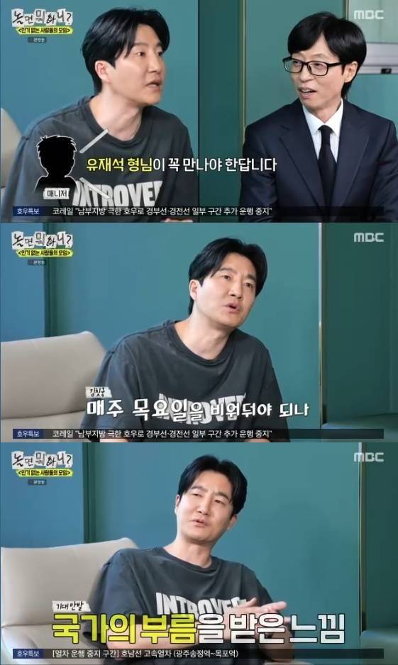 이어 "바쁜데 매주 목요일을 비워둬야 하나 했다. 재석이 형이 불렀다고 해서 국가의 부름을 받은 느낌으로 왔다. 필사의 노력을 다해야겠다고 생각했다"고 들뜬 모습을 보였다.
