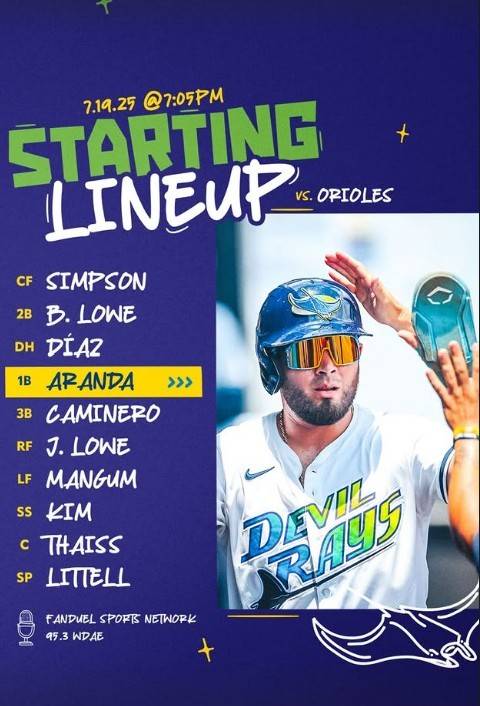 탬파베이는 챈들러 심슨(중견수)-브랜든 라우(2루수)-얀디 디아스(지명타자)-조너선 아란다(1루수)-주니오르 카미네로(3루수)-조시 로우(우익수)-제이크 맹검(좌익수)-김하성(유격수)-맷 타이스(포수) 순으로 라인업을 짰다.