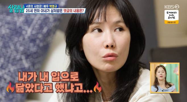 배우 박영규의 25살 연하 아내 이윤주가 악성 댓글에 상처받은 심경을 고백했다.