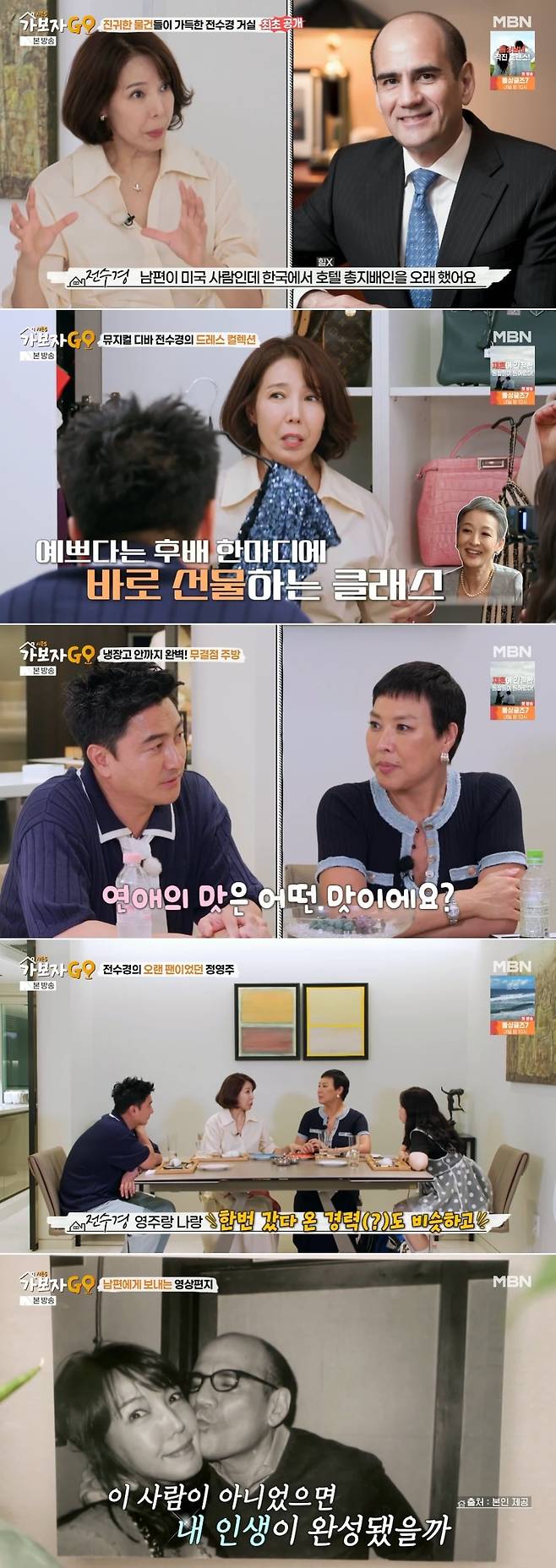 지난 19일 방송된 MBN '가보자GO' 시즌5 3회에는 뮤지컬 디바 전수경이 등장해 관객들에게 큰 사랑을 받는 뮤지컬 '브로드웨이 42번가'의 연습실부터 고급스러운 호텔을 연상시키는 러브하우스까지 다양한 장소를 공개했다.