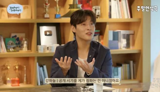 영상에선 강하늘이 게스트로 출연해 유연석과 토크를 펼치는 모습이 담겼다. 유연석은 “왜 이렇게 안 쉬나, 쉬는 날이 있나?”라고 물었고 강하늘은 “제가 이번 연도에 거의 매달 작품이 공개가 됐다. 3월에 ‘스트리밍’, 4월에 ‘야당’, 5월에 ‘당신의 맛’, 6월에 ‘오징어게임’, 7월에 ‘84제곱미터’가 공개됐다”라고 밝혔다.