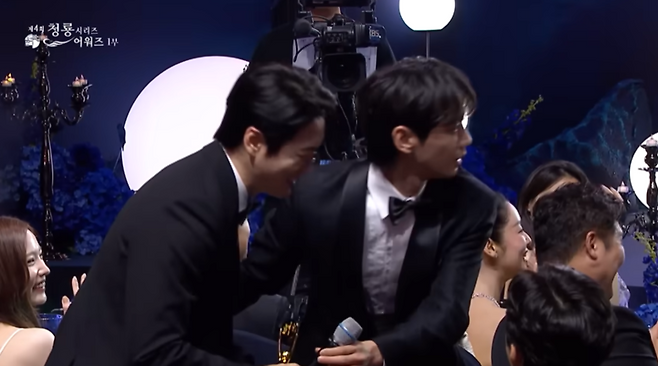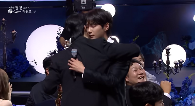 이준영은 황급히 무대에서 내려와 이준혁에게 직접 트로피를 건네고 포옹하며 훈훈한 분위기를 연출했다.