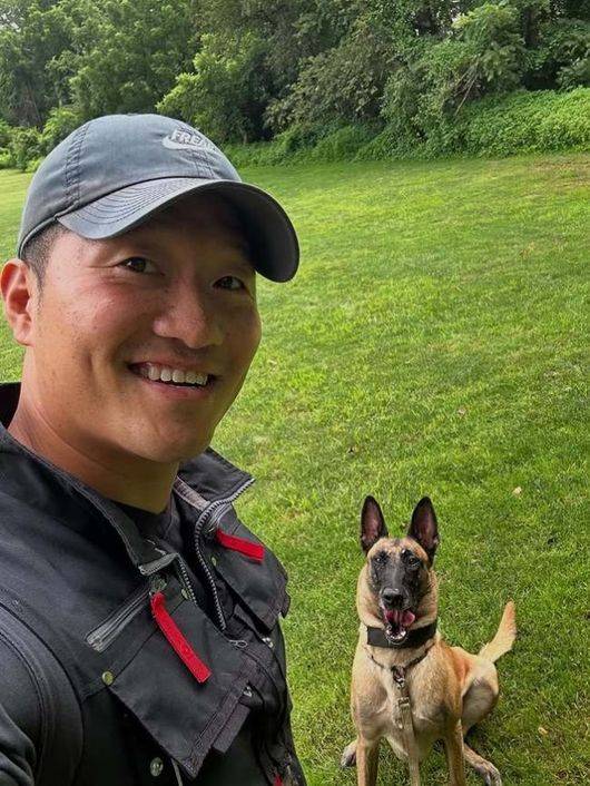 공개된 사진 속 강형욱은 반려견과 함께 미국 공원을 산책하는 모습. 트레이닝복 차림의 강형욱은 환하게 웃으며 반려견과 여유로운 시간을 보내고 있다. 강형욱과 반려견의 닮은 분위기가 시선을 끌었다.
