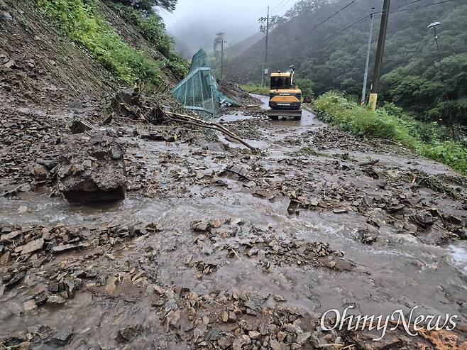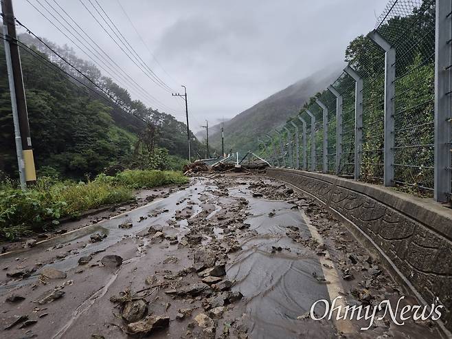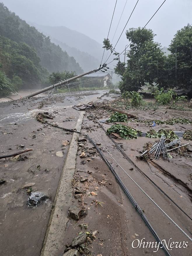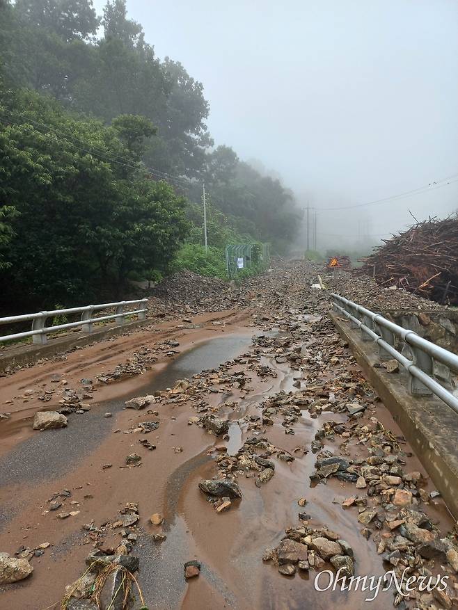 마을로 가는 길이 막혀 이틀째 집에 들어가지 못하고 있다고 한 그는 "손을 댈 수 없을 정도다. 길이 막혀 집에 가지 못하고 있는데, 주민들의 고통이 이만저만 아니다"라며 "중태마을은 70가구 정도가 사는데 고립 상태나 마찬가지다. 주민들은 대피를 한 것으로 안다"라고 전했다.