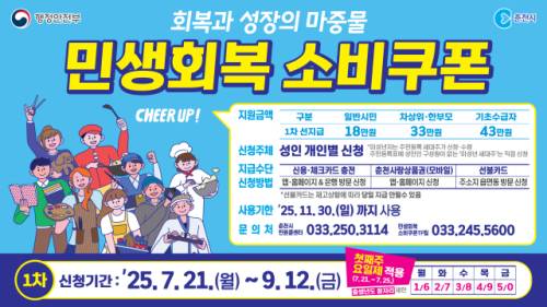 춘천시는 21일부터 민생 회복 소비쿠폰 1차 지급을 시작한다고 밝혔다.