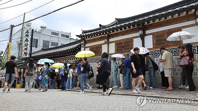 (서울=연합뉴스) 서대연 기자 = 초복인 20일 시민들이 서울 시내 한 삼계탕집에 줄을 서 있다. 2025.7.20