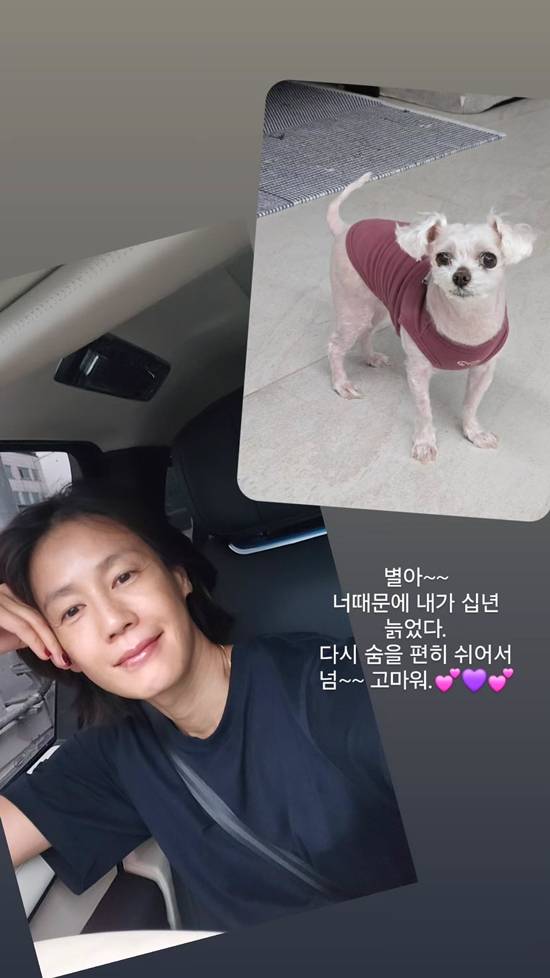 지난 19일 김지호는 "별아 너 때문에 내가 십 년 늙었다. 다시 숨을 편히 쉬어서 너무 고마워"라는 글과 함께 반려견 사진을 올렸다.