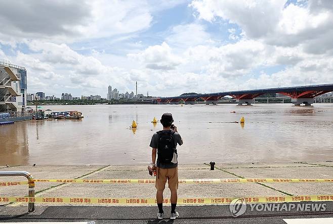 (서울=연합뉴스) 윤동진 기자 = 중부지방 장마가 종료된 20일 서울 망원한강공원에서 한 시민이 사진을 찍고 있다. 2025.7.20
