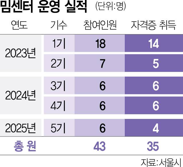 이에 서울시는 2020년부터 전국 최초로 ‘경계선 지능인 평생교육지원조례’를 제정하고, 2022년 밈센터를 만들었다. 해당 센터에서는 선별·발굴부터 생애주기별 교육, 심리정서지원 등 통합적 지원을 하고 있다. 특히 청년들을 대상으로 맞춤형 직무교육을 운영 중인데 △바리스타 양성 ‘커피랩’ △식생활 교육 활동가 양성 △도시 양봉가 양성 등이 대표적이다. 43명의 청년이 참여한 결과 35명이 수료해 자격증을 취득했으며 이 중 9명은 사회적 기업인 ‘프리웨일 카페’에 바리스타로 취업하기도 했다.