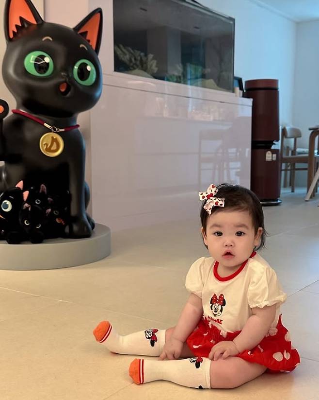 공개된 사진에는 넓은 거실 바닥에 앉아 있는 박수홍의 딸 재이의 모습이 담겨 있으며, 미키마우스의 대표 캐릭터 '미니마우스'에서 영감을 받은 룩을 완벽하게 소화하고 있어 눈길을 끈다.