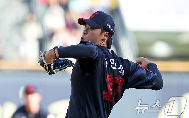 (서울=뉴스1) 이승배 기자 = 20일 오후 서울 송파구 잠실야구장에서 열린 프로야구 '2025 신한 SOL뱅크 KBO 리그' 롯데 자이언츠와 LG트윈스의 경기에서 롯데 선발투수 이민석이 역투하고 있다. 2025.7.20/뉴스1