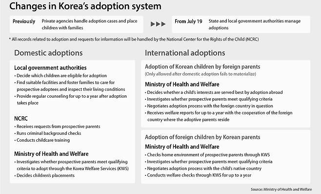 The changes entail a smaller role for private agencies that have dominated adoptions from Korea, such as Holt International Children's Services. While some of their functions — such as counseling — will continue, they will no longer decide placements.