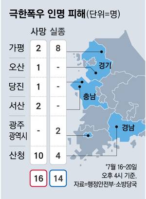 산청, 가평 뿐만 아니라 16일부터 닷새간 지속된 호우는 전국 곳곳에 씻기 어려운 상처를 남겼다.