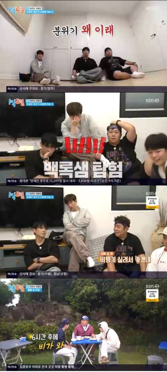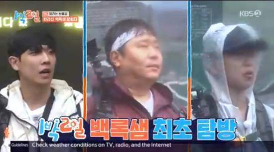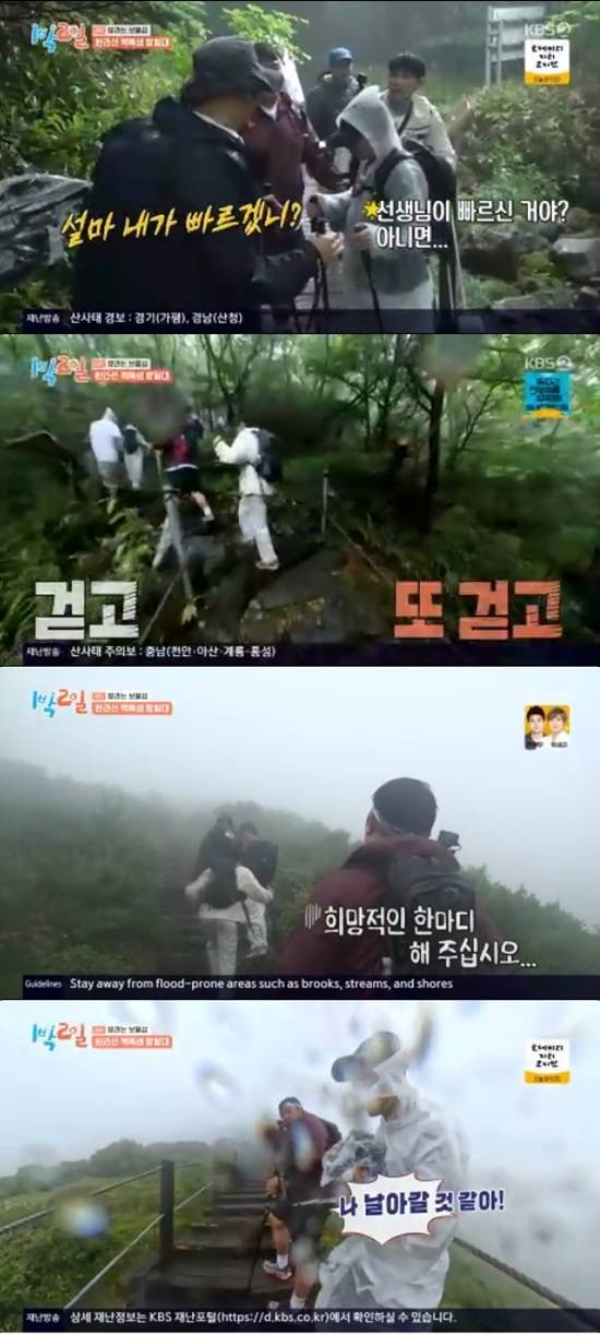 이준X문세윤X딘딘, 백록샘 최초탐방 "비바람 뚫고 극한산행" (1박 2일)[종합]
