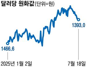 최근 발표된 6월 미국 소비자물가지수(CPI)와 생산자물가지수(PPI)는 전월보다 상승하며 인플레이션 재점화 우려를 키웠다. 관세 충격이 물가를 자극하고, 이에 따라 미국 연방준비제도(Fed·연준)의 긴축 기조가 장기화할 수 있다는 전망이 달러 강세에 힘을 실었다. 글로벌 자금의 위험 회피 심리도 커지면서 달러로의 쏠림 현상이 뚜렷해졌다.