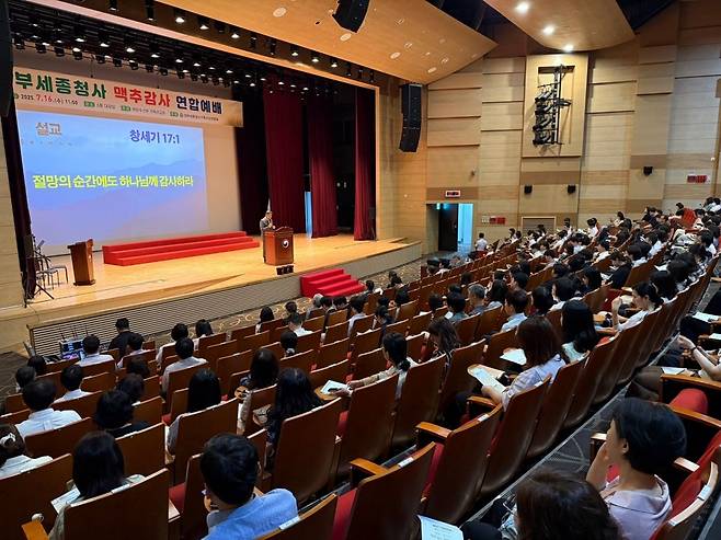 정부세종청사 선교연합회(회장 최은희)와 해양수산부 기독선교회(회장 김명진)가 지난 16일 정부세종청사 대강당에서 250여명의 기독 공무원들이 참여한 가운데 ‘2025년 정부세종청사 맥추감사 연합예배’를 드렸다.