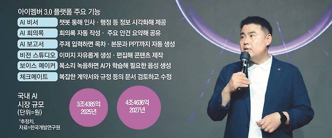 이날 매일경제와 만난 김 대표는 “아이멤버 3.0은 기술이 아닌 ‘업무 방식’ 자체를 바꾸는 플랫폼”이라며 “롯데 60여 개 그룹사 7만명 이상이 매일 아이멤버를 사용하면서 업무 전 영역에 최적화된 AI 서비스를 만들어냈다”고 말했다. 그는 “현장에서 검증된 실제 사용 경험과 자체 기술 내재화를 바탕으로 더 똑똑하고 안전한 AI 시대를 열어갈 것”이라며 “현재 100여 개인 고객사를 연말까지 300개 이상으로 늘릴 것”이라고 덧붙였다.