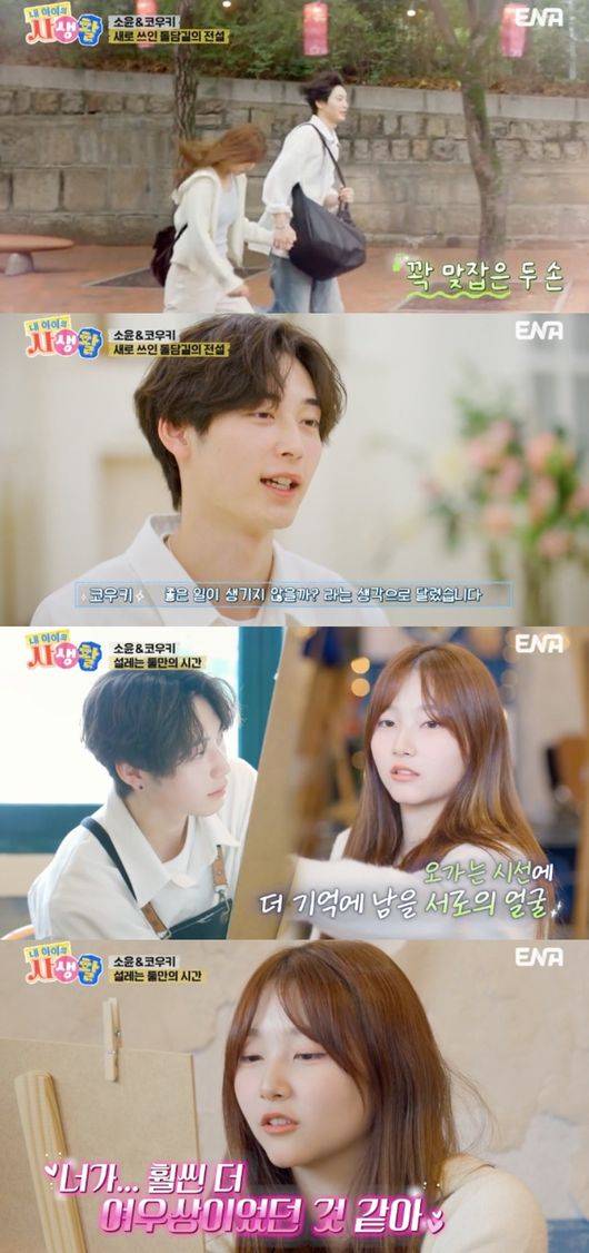 서로를 그려주며 즐거운 시간을 보낸 두 사람. 소윤은 “분위기가 엄청 달달했다. 서로 얼굴 보면서 그리는 게 좋았어요”라고 했고, 코우키도 “그릴 때 매번 한번씩 눈이 마주쳤다. 웃음이 나와서 자연스럽게 입꼬리가 올라갔다. 집중하는 얼굴이 귀여웠다”라고 전했다.
