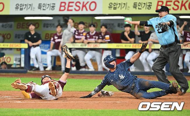 삼성 라이온즈 구자욱이 8회말 1사 2,3루 김태훈의 1루 땅볼때 홈에서 세이프되고 있다. 2025.07.20 / foto0307@osen.co.kr