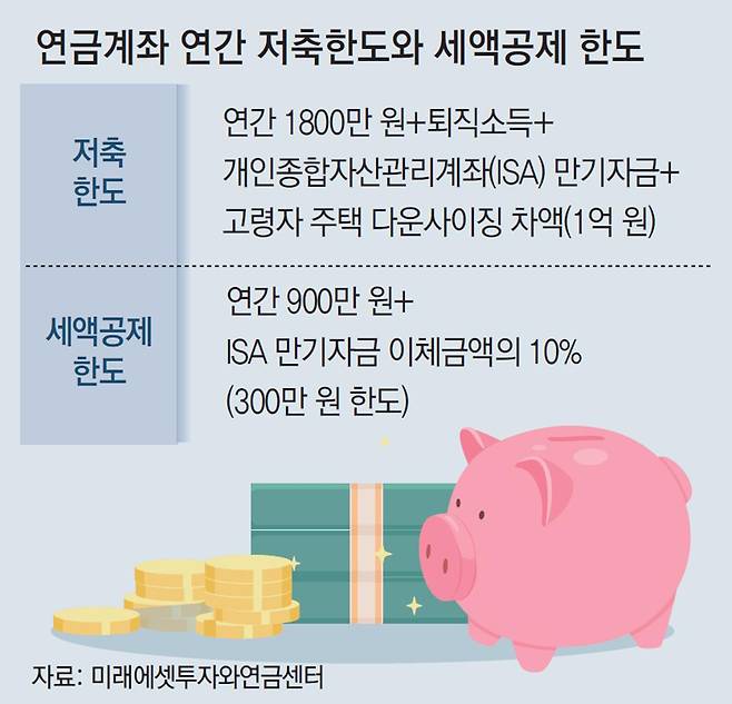 같은 금융상품에 투자할 수 있다면 은퇴 후에는 세금과 건강보험료 부담이 작은 연금계좌를 주거래 통장처럼 활용하면서 생활비를 꺼내 쓰는 것이 낫지 않을까. 그러려면 일찌감치 연금계좌를 만들고 일반계좌에 있던 노후자금을 연금계좌로 옮겨야 한다. 왜냐하면 연금계좌에 이체할 수 있는 자금 종류와 저축 금액에 한도가 정해져 있어 은퇴 시점에 한꺼번에 자금을 이체할 수 없기 때문이다.