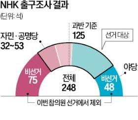공영방송 NHK는 이날 오후 8시 투표가 끝난 직후 출구조사 결과 이번 선거 대상 의석 125석 중 자민당이 27~41석, 공명당이 5~12석을 얻는 데 그칠 것으로 예측했다. 자민당과 공명당이 합쳐도 32~53석에 그칠 것이라는 전망이다. 이시바 총리가 목표로 한 50석을 확보하기 어려울 것으로 분석된다.