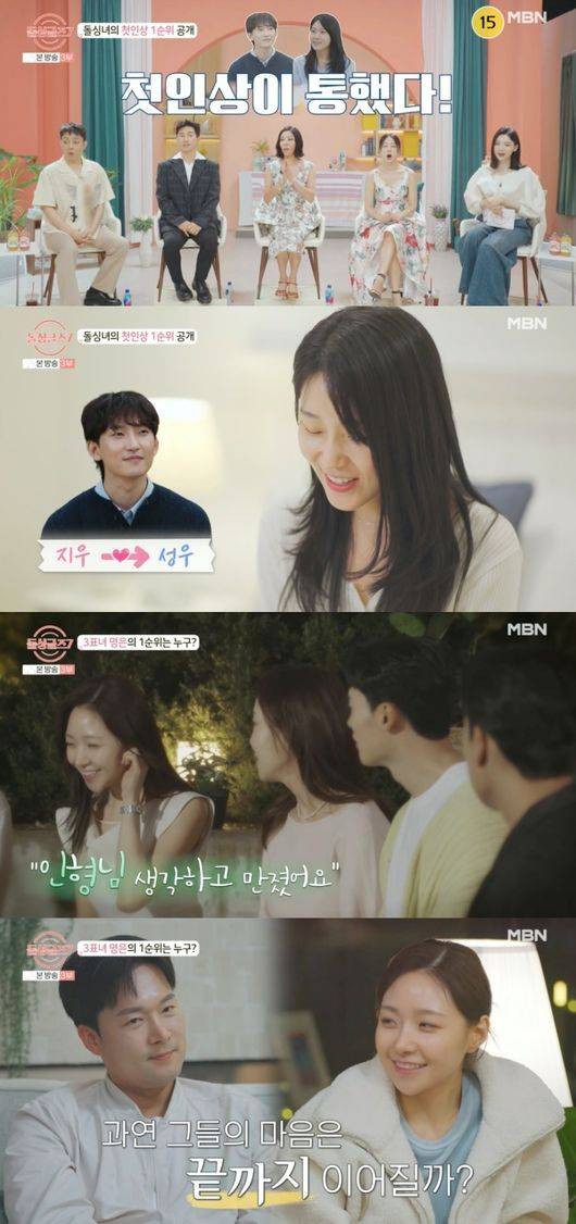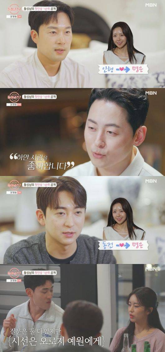 장수하는 이동건에게 호감을 드러냈고, 이다은은 “저도 아랍상 좋아한다. 그래서 이동건 씨에게 마음이 간다”라며 장수하 마음을 공감했다. 조아름은 김도형을 꼽았고, 김예원은 모두의 예상과 달리, 박성우를 첫인상 1위로 선택해 반전을 안겼다.