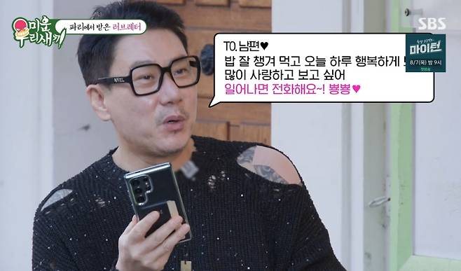 재혼 후 맞는 첫 생일을 떨어져서 보내게 된 이상민은 아침에 아내로부터 받은 메시지를 공개하면서 사랑에 푹 빠진 모습을 보였고, 이어 "이서방"이라는 호칭으로 시작하는 장모님의 메시지까지 자랑했다.