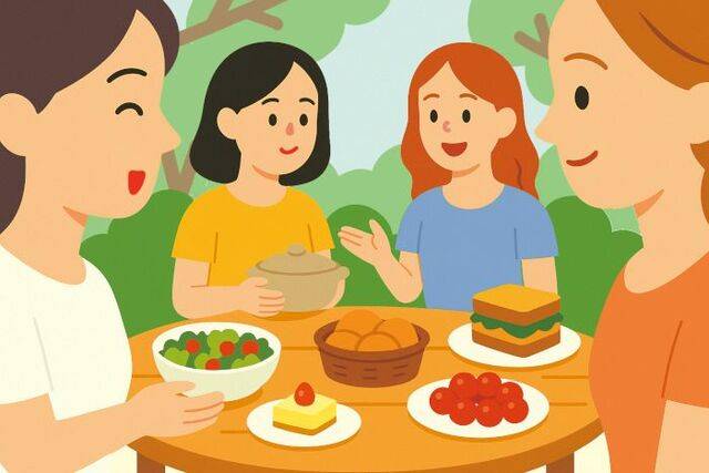 각자 음식들을 조금씩 준비해와 둘러앉아 함께 나눠 먹으며 끝없이 대화를 이어갔다.