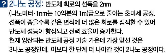 차세대 공정인 ‘2나노’는 인공지능(AI) 반도체 등 고성능 칩에 적용되는 기술로 반도체 업계에서는 2나노 공정을 향후 반도체 주도권을 좌우할 핵심 기술로 꼽는다. AI, 자율주행, 고성능 컴퓨팅(HPC) 분야에서 최첨단 반도체에 대한 수요가 커지면서, 이를 제조하는 초미세 공정이 고객사들의 선택을 가르는 기준이 될 것이라는 관측에서다. 지금까지는 TSMC와 삼성전자가 양산하는 3나노가 반도체 업계에서 가장 앞선 기술이었다.