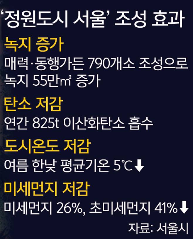 오세훈 서울시장이 ‘정원도시 서울’을 선언한 지 2년 만에 시민이 체감할 만한 성과가 나타나고 있다. 도심 곳곳에 설치된 녹색정원은 휴식공간으로서 시민 삶의 질을 높이는 것뿐 아니라 도심 온도를 낮추고, 이산화탄소를 흡수하는 등 폭염과 기후위기 대응에도 효과를 보이고 있다.