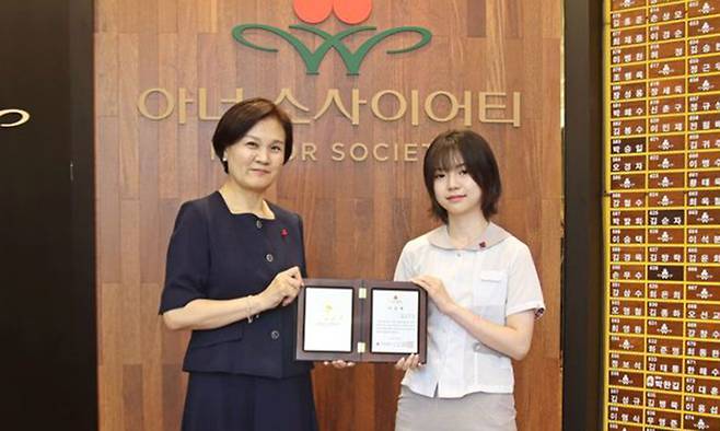 청소년 베스트셀러 작가 백은별(16·사진 오른쪽)이 1억원 이상 고액기부(약정)자 모임인 '아너 소사이어티(Honor Society)'에 가입했다.