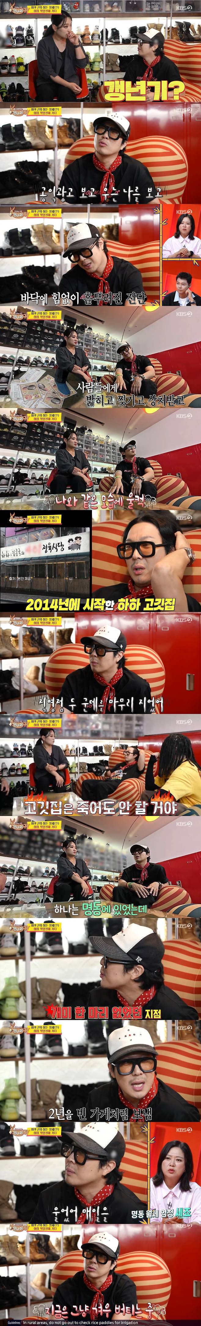 그때 현재 고깃집을 운영 중인 하하는 요식업 고충을 토로했다. 지난 2014년에 시작한 고깃집. 현재는 직영점 두 군데를 마무리 지었다고.