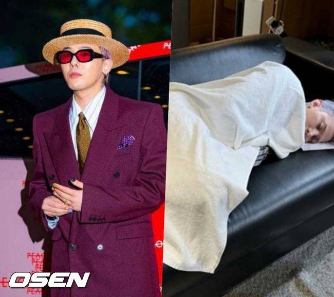 공개된 사진 속 지드래곤은 무대 뒤 소파에 몸을 기댄 채 짧은 휴식을 취하고 있다. 퍼플빛 머리카락에 주황색 양말을 신은 그의 모습은 여전히 스타일리시했지만, 피곤함이 묻어나는 표정이 팬들의 안타까움을 샀다. 흰색 타월로 온몸을 감싼 채 곤히 눈을 감고 있는 모습은 말 그대로 ‘숨고르기 중’이었다.